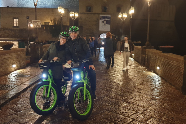 Escape the daytime and visit Naples during the night on this tour, ride the e-bike by the streetlights that give the city a magical atmosphere. Starting with the heart of the historical city center, Piazza San Domenico Maggiore and Piazza del Gesù Nuovo and followed by the Maschio Angioino and the historical district of Santa Lucia. Enjoy the panoramic scenery of the city and its light from San Antonio a Posillipo terrace, before reaching the romantic Marechiaro area. The tour will then reach Mergellina to enjoy a stop with a snack in front of the evening sea sight and the surrounding fully illuminated city. The tour will continue along via Caracciolo and will reach Castel dell'Ovo and the Borgo Marinari before returning to the starting point.